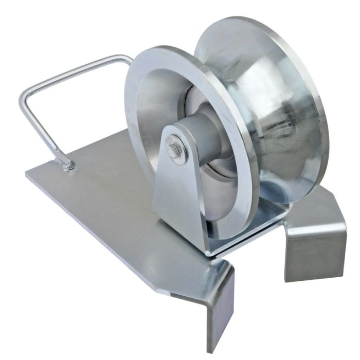 A heavy duty cable roller designed to provide an even pull at the corner of the manhole allowing the roller to swivel in the direction of the pull. Unit swivels to the direction of the pull. The unit has a galvanised steel roller which tapers from 130 to 90mm and has a width of 75mm.
